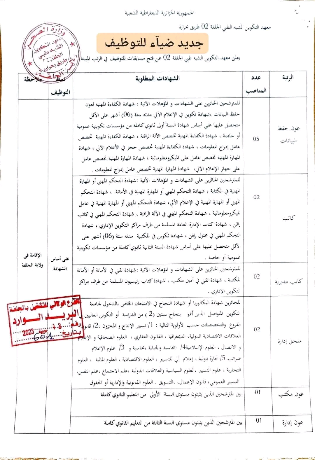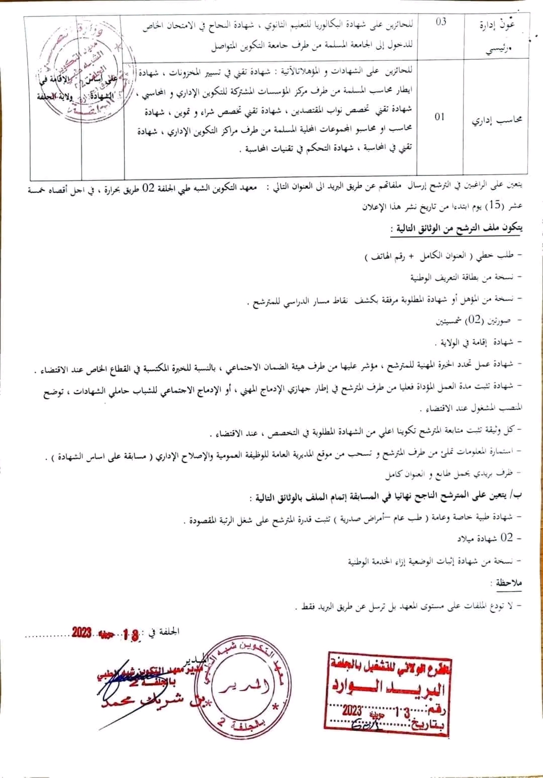 اعلان عن توظيف ب معهد التكوين الشبه طبي لولاية الجلفة 29 منصب